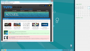 Windows 8 offre aussi la possibilité d’avoir deux applications ouverte sur le même écran. En effet, une application se différencie d’un logiciel par une exécution en plein écran. Pour en afficher deux en même temps, il faut en ancrer une à un des côté de l’écran. Pour cela :
